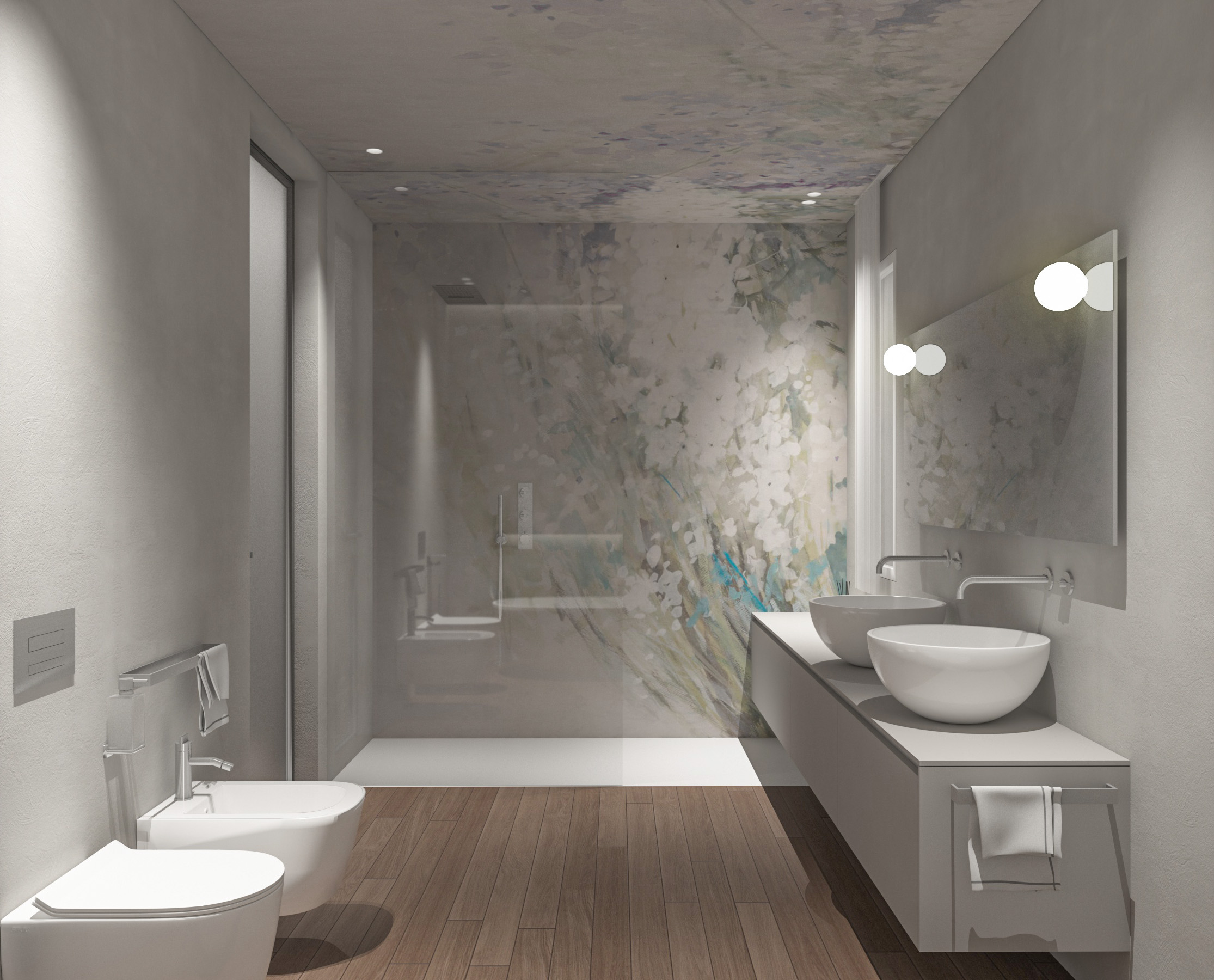 Baño moderno con ducha italiana, mampara de cristal y acabados premium